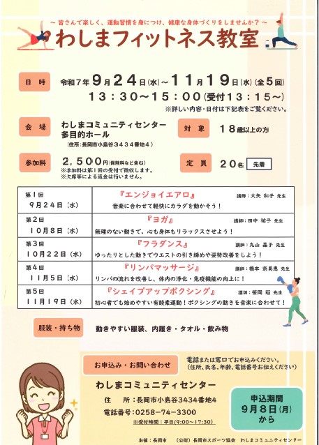 9月24日~11月19日の間、フィットネス教室を計5回開催します🌈